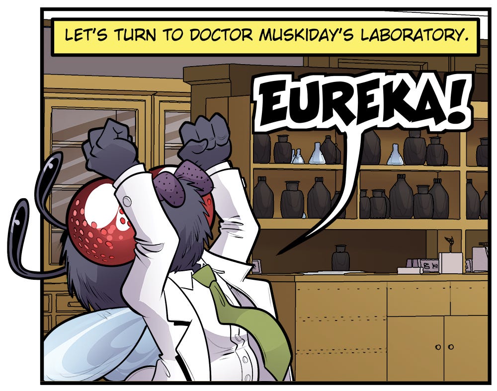 Coming up, in Dr. Muskidayâs laboratory, a cry of âEureka!â echoes through the halls â and for once, itâs not about bending the laws of reality into something moist and confusing.