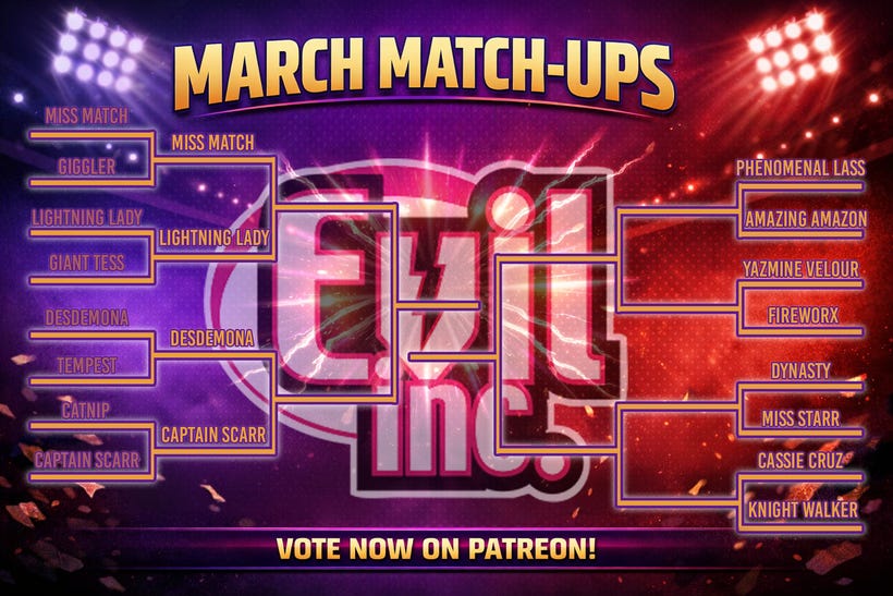 Sixteen Evil Inc characters entered the tournament… and now the Superheroes step into the ring.