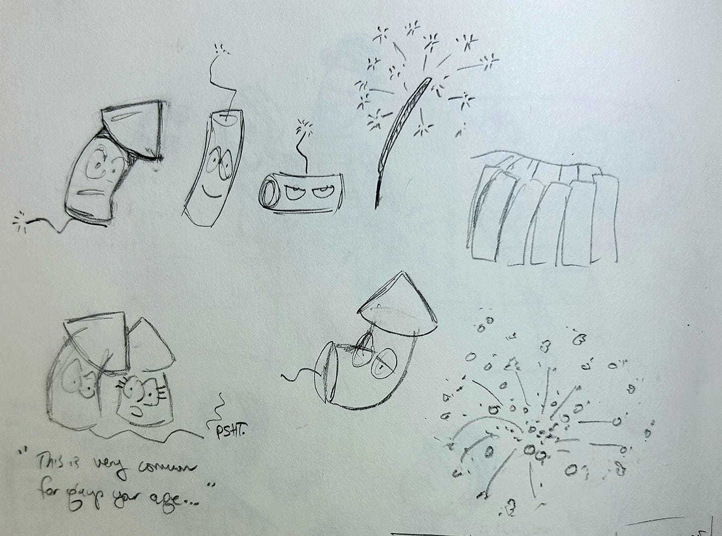 Since it was July, I also tried out some ideas involving anthropomorphic firecrackers.