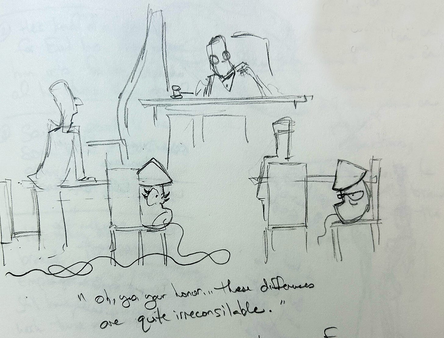 This is one of those rare moments in which the sketch and the final art are pretty similar. More often than not, I end up making significant changes. Even then, if you watch the timelapse, you can see me experimenting with different visuals along the way. For example, for a hot minute, there was a minister included in the composition.
