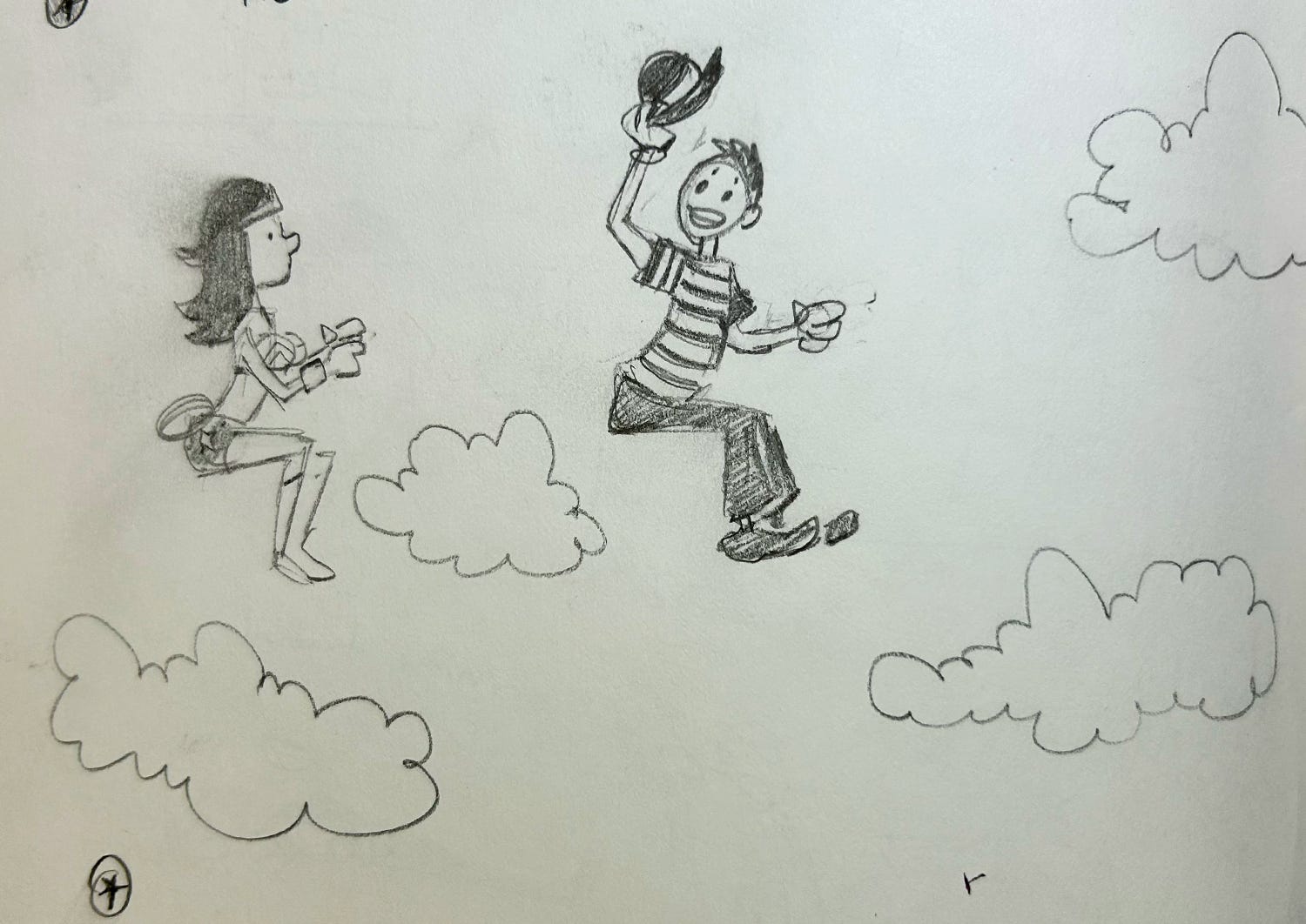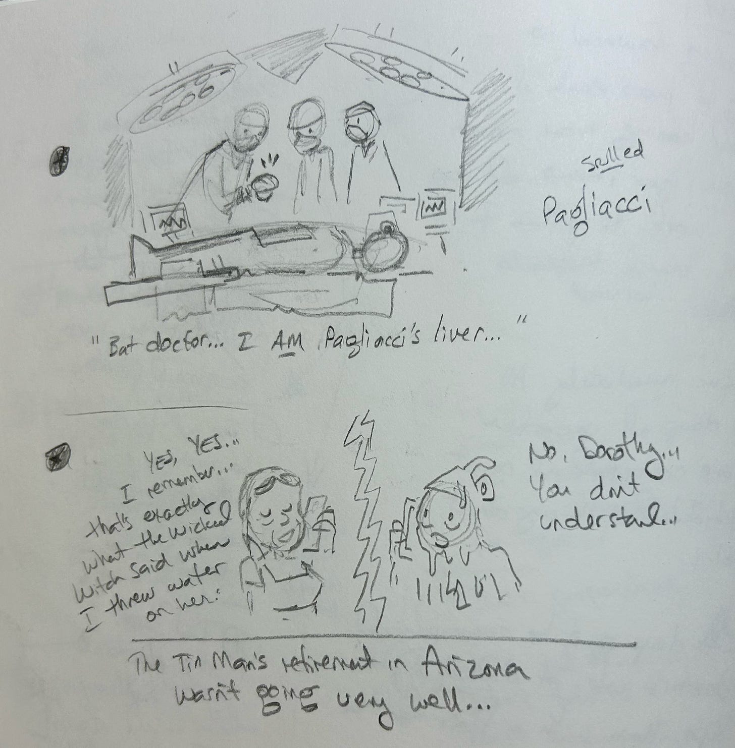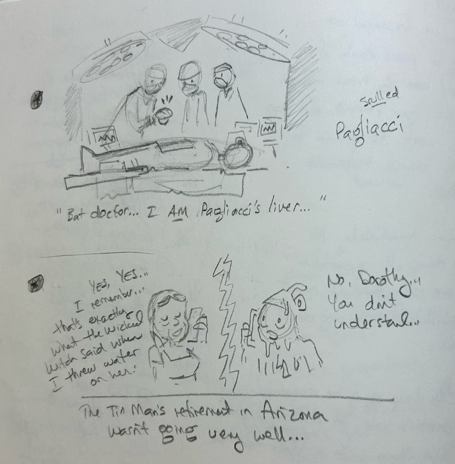 I might try to use the next few sketches in final cartoons, so consider this your spoiler warning. Most of them need… something. But that’s part of the fun.